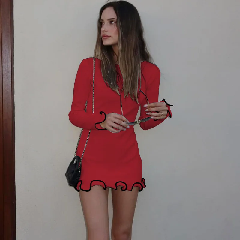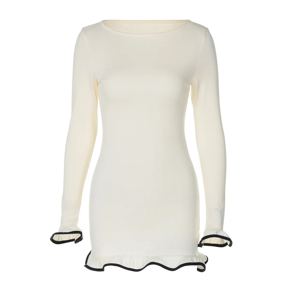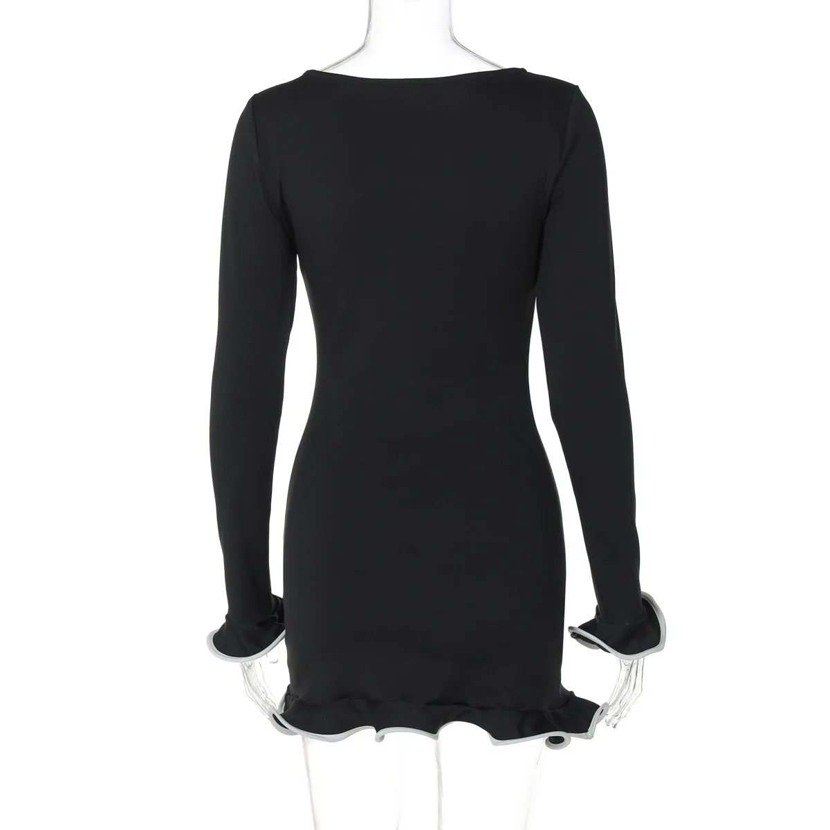 Cryptographic Embellished Fashion Trim Mini Dress Fall Winter Outfits Casual Vestido Elegant Solid Long Sleeve Dresses Clothes