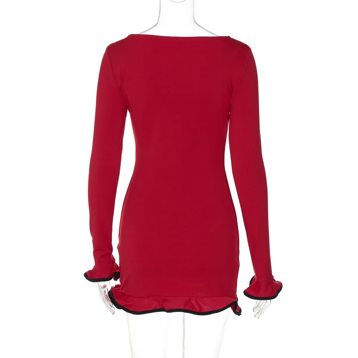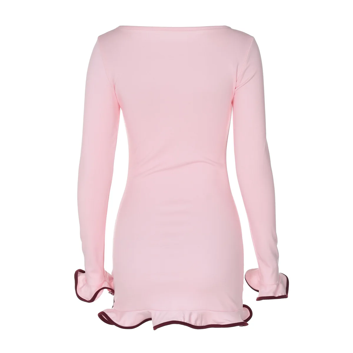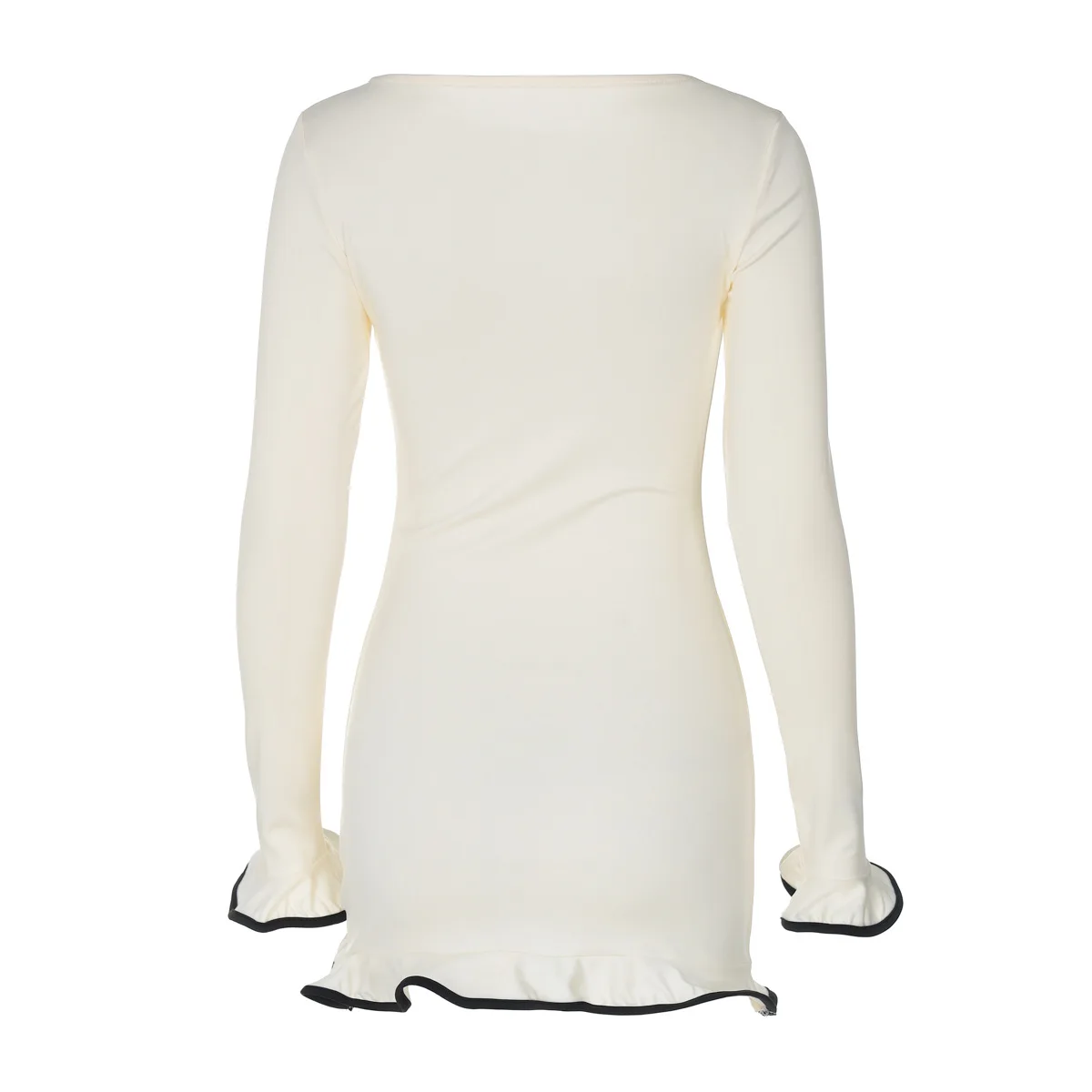 Cryptographic Embellished Fashion Trim Mini Dress Fall Winter Outfits Casual Vestido Elegant Solid Long Sleeve Dresses Clothes
