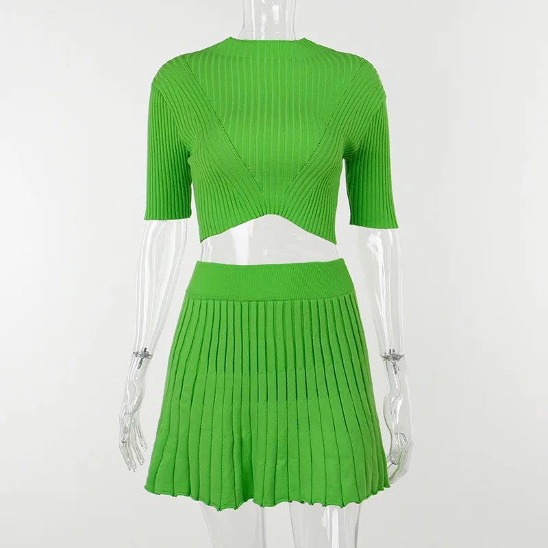Cryptographic Fashion Elegant Knitted Dress Sets Sexy Pleated Matching Set Outfits for Women Winter Mini Skirts 2 Piece Sets