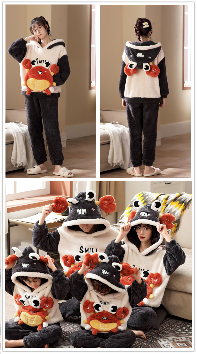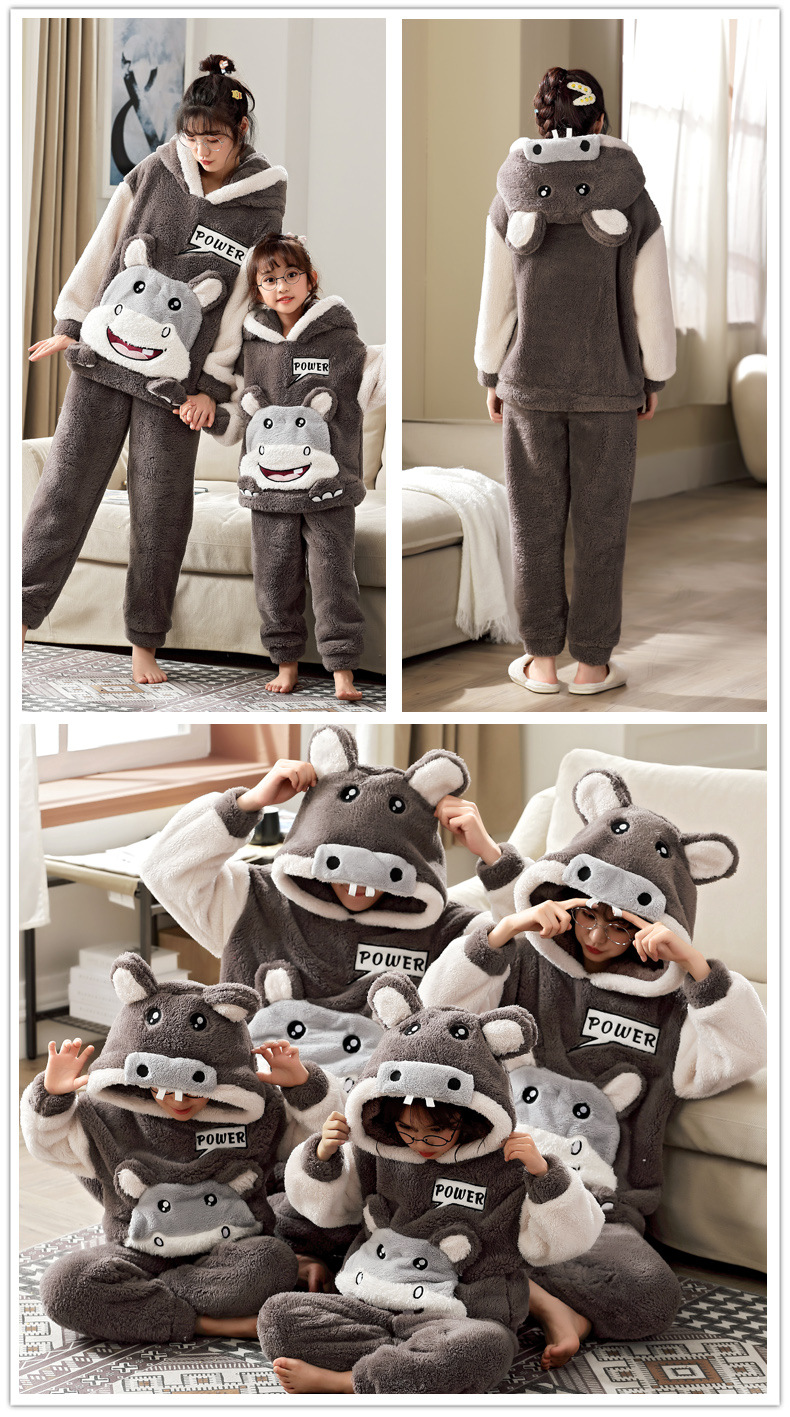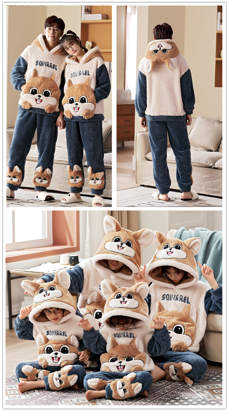 Family Matching Pajamas Set Thicken Winter Flannel Homewear Warm Mother Kids Sleepwear Women Men Tops Pants Couples Home Clothes