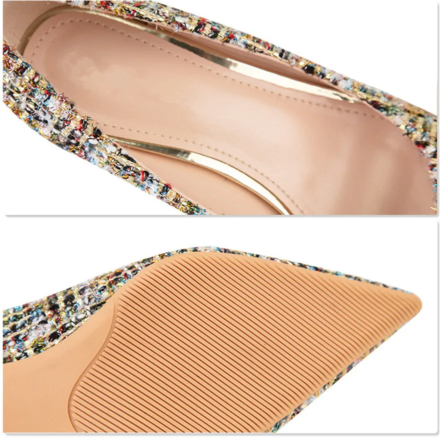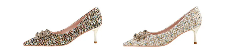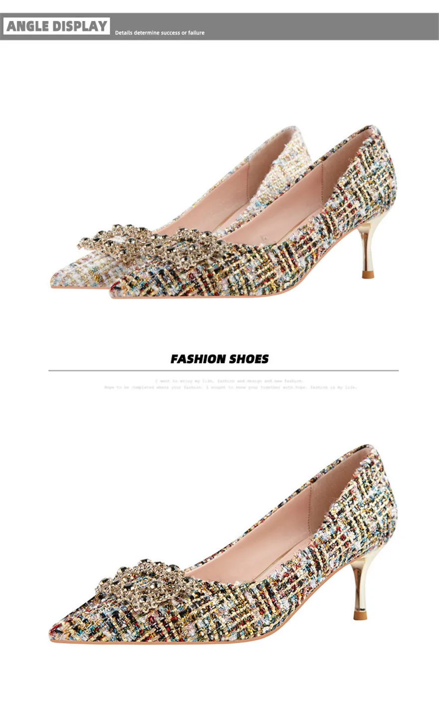 Fashion Crystal Buckle Women Pumps Autumn Pointed Toe High Heels Shoes Black White Sexy Stiletto Party Ladies Work Footwear