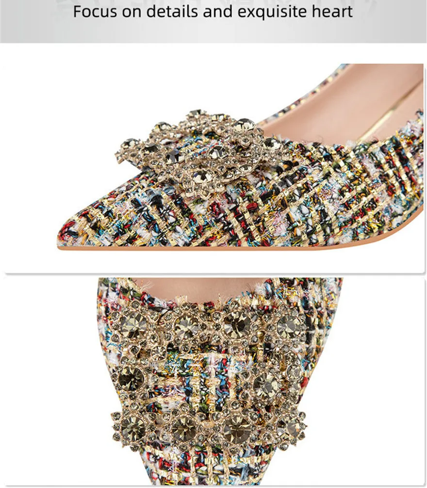 Fashion Crystal Buckle Women Pumps 2025 Autumn Pointed Toe High Heels Shoes Black White Sexy Stiletto Party Ladies Work Footwear