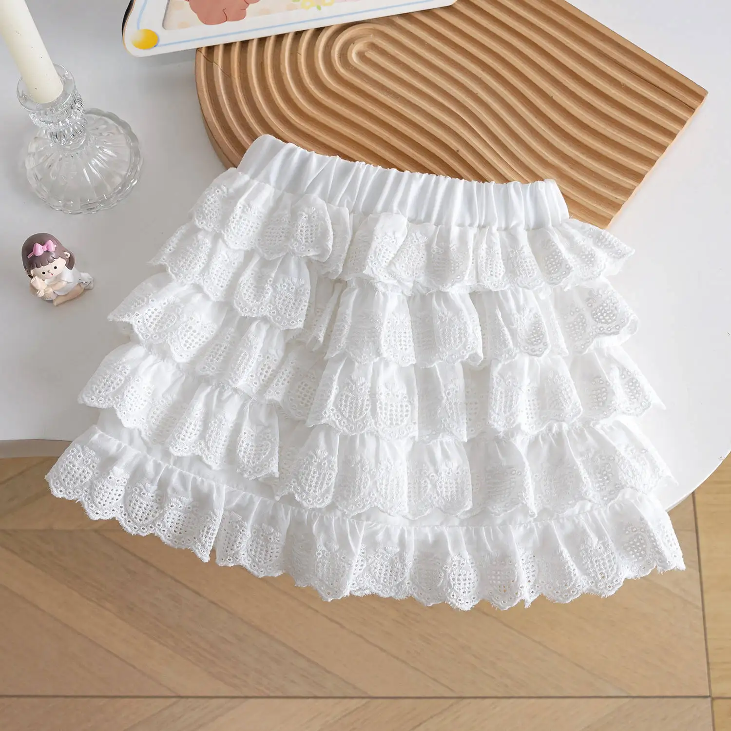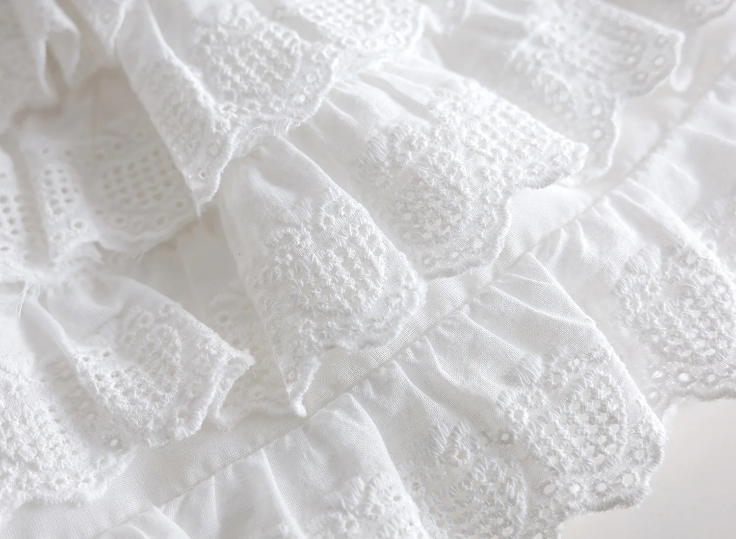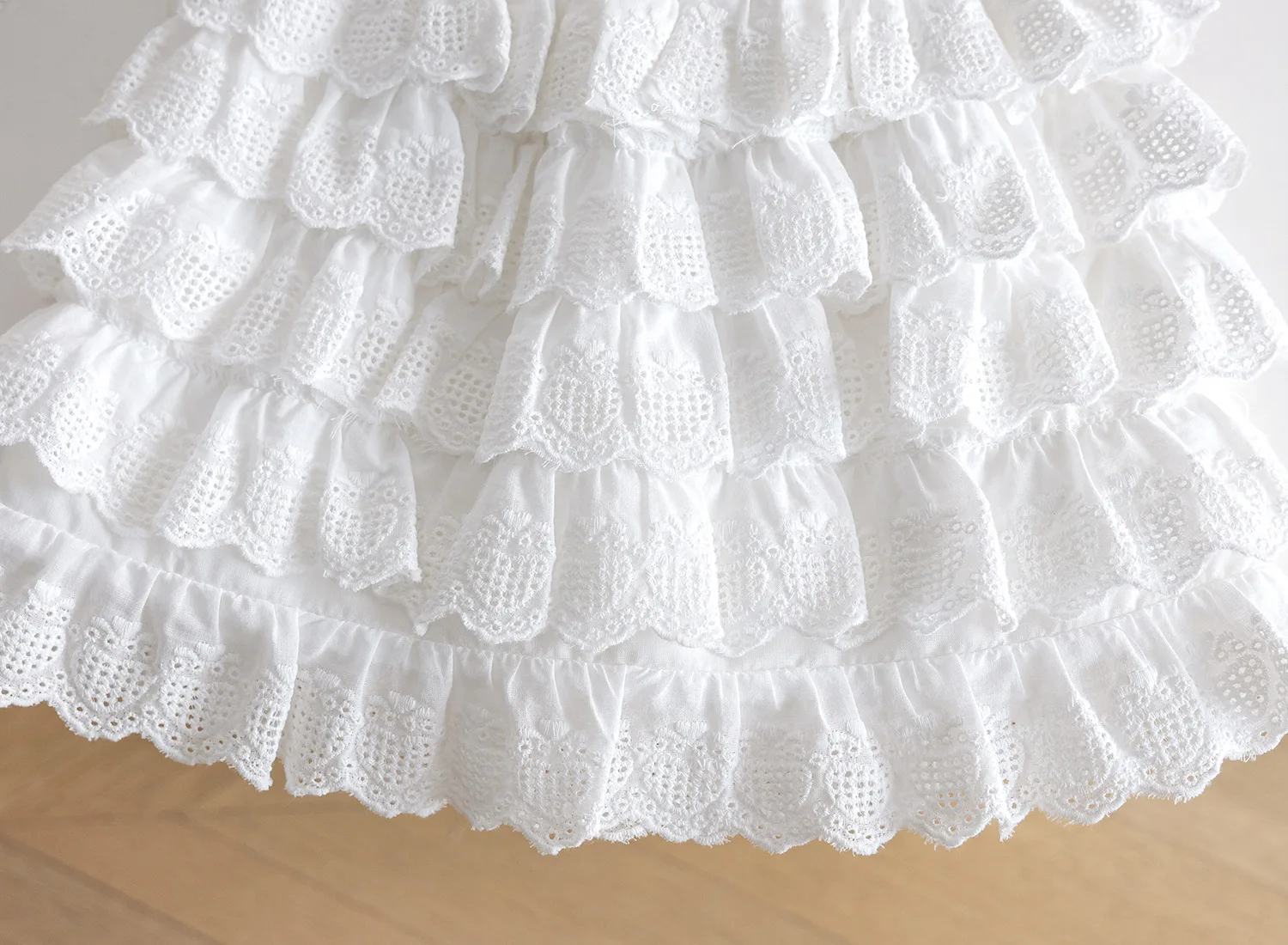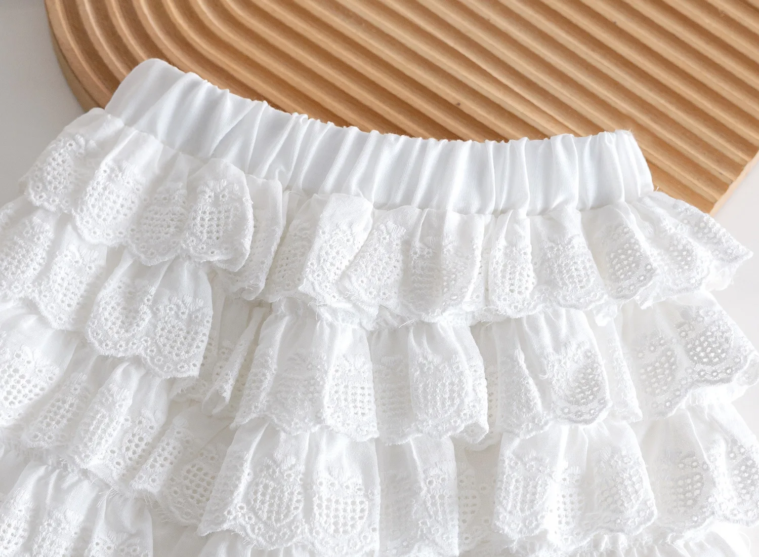 ### 2 - 6 Years Old Girls Cotton Floral Lace - Embroidered Sleeveless Top + Ruffled Cake Skirt Set