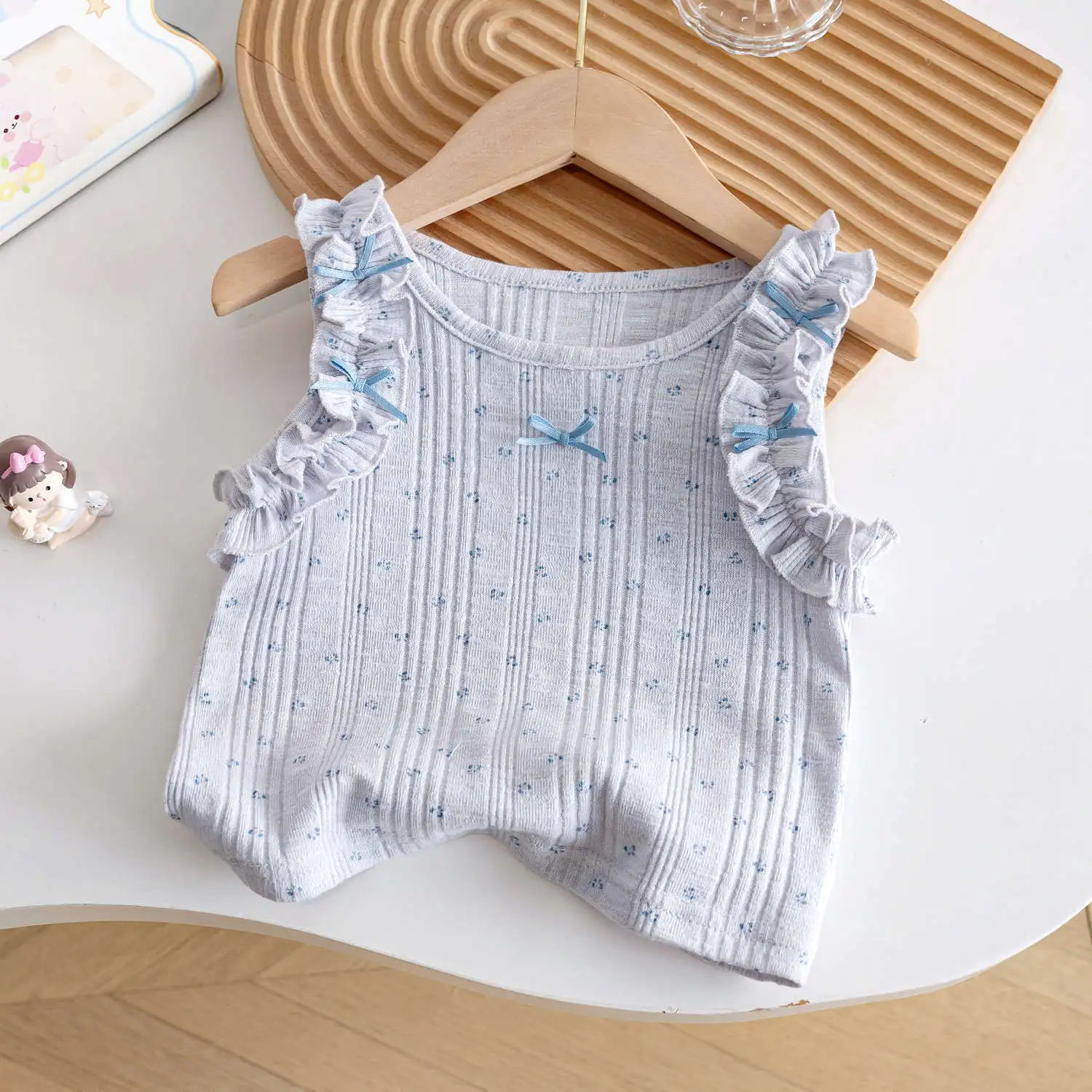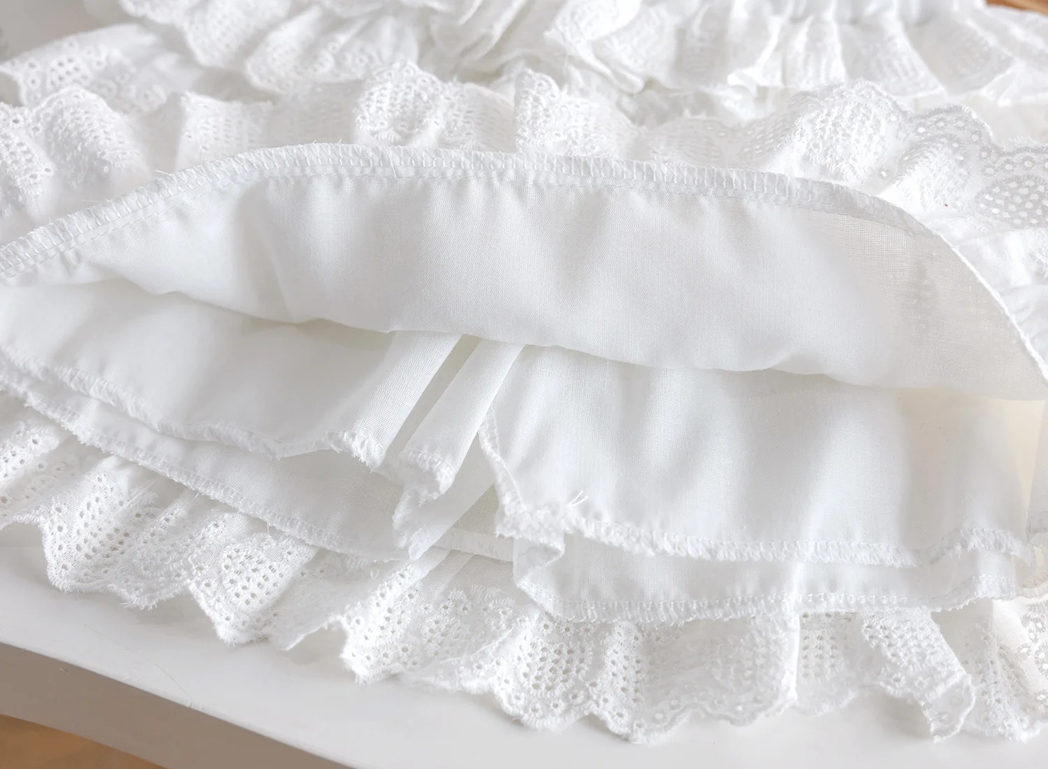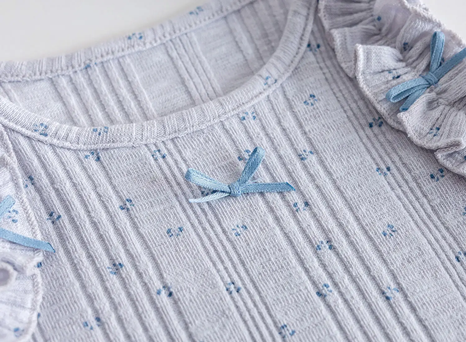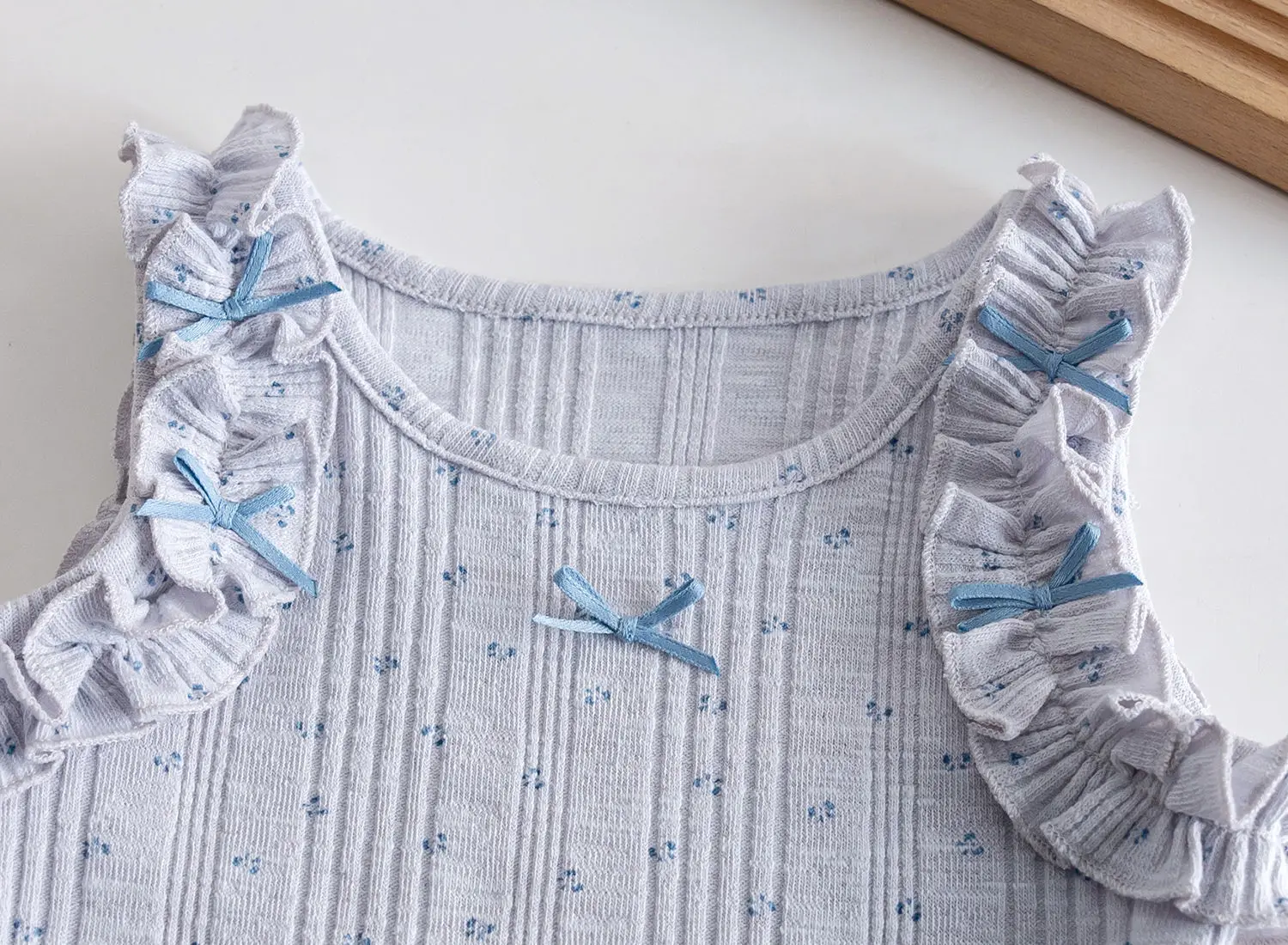 3. **Adorable Ruffled Design**: The top's ruffled sleeves with bow accents and the skirt's multi - layer ruffled cake style create a playful, fashionable look.