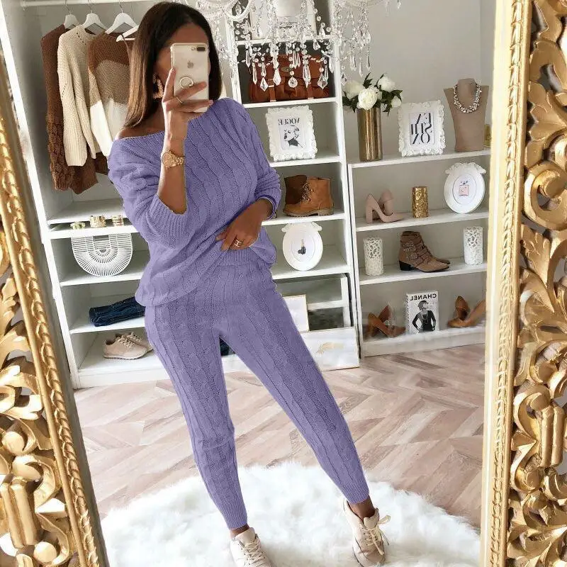 Plus Size 4XL 5XL Womens Outfits Autumn Winter Tracksuit Set Knitted Sweater and Pants Two Piece Set Women Sweater Pants Sets