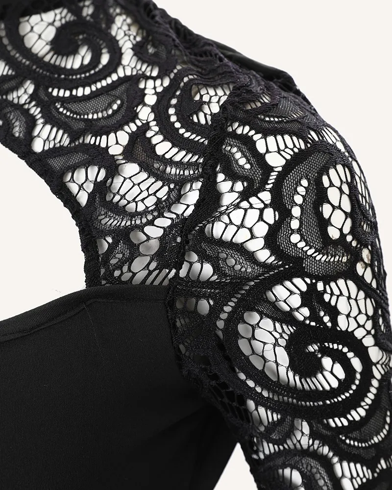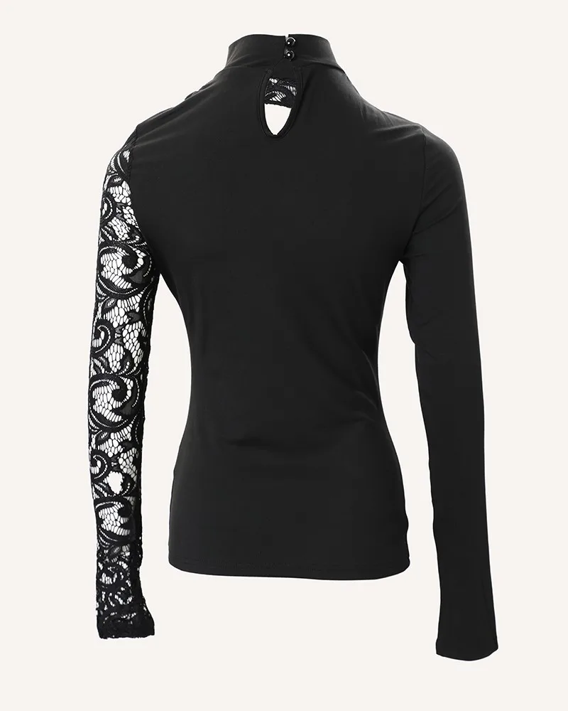 Sexy Tee Contrast Lace Cutout Long Sleeve Top Fashion Woman Shirt 2025 Autumn Winter Spring Blouses Female Clothing Outfits