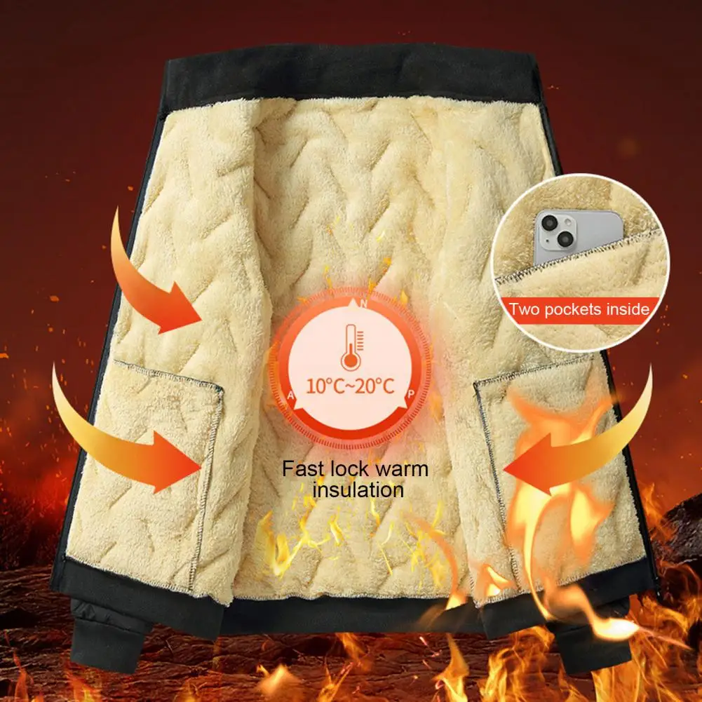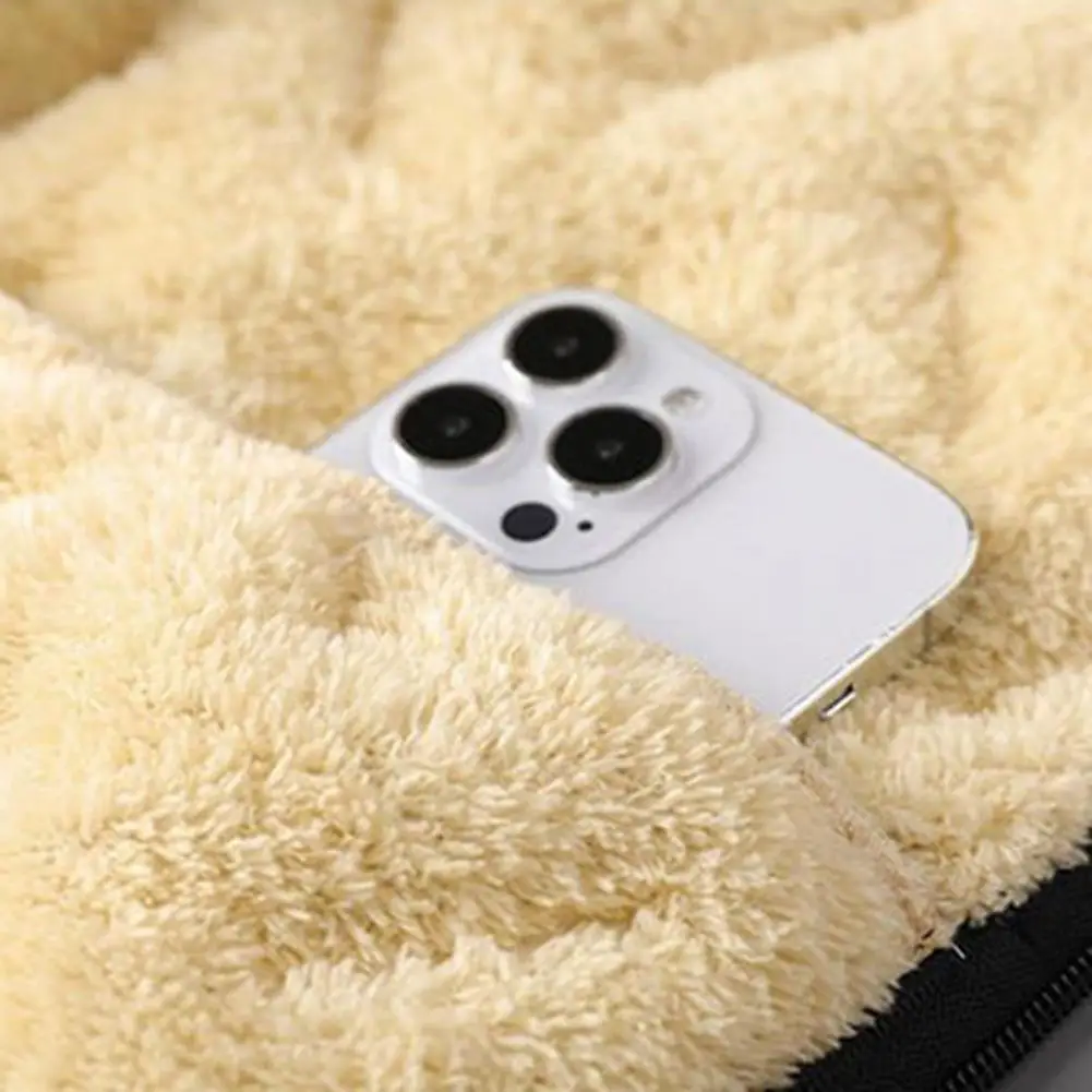 The inner lamb velvet fabric ensures a soft and cozy feel while efficiently trapping heat to maintain a constant temperature, keeping you snug and comfortable throughout the day.