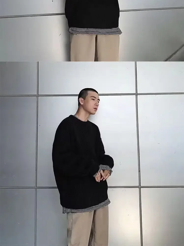 • Trendy Design :This men's sweater features a trendy Korean style design, with a loose casual retro aesthetic that's perfect for autumn and winter.